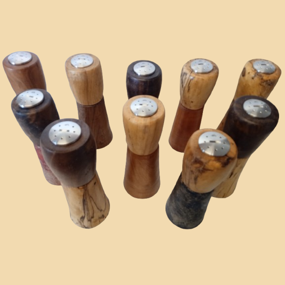 der hellere Korpus ist z.B. für Salz, der dunklere für Pfeffer gedacht,